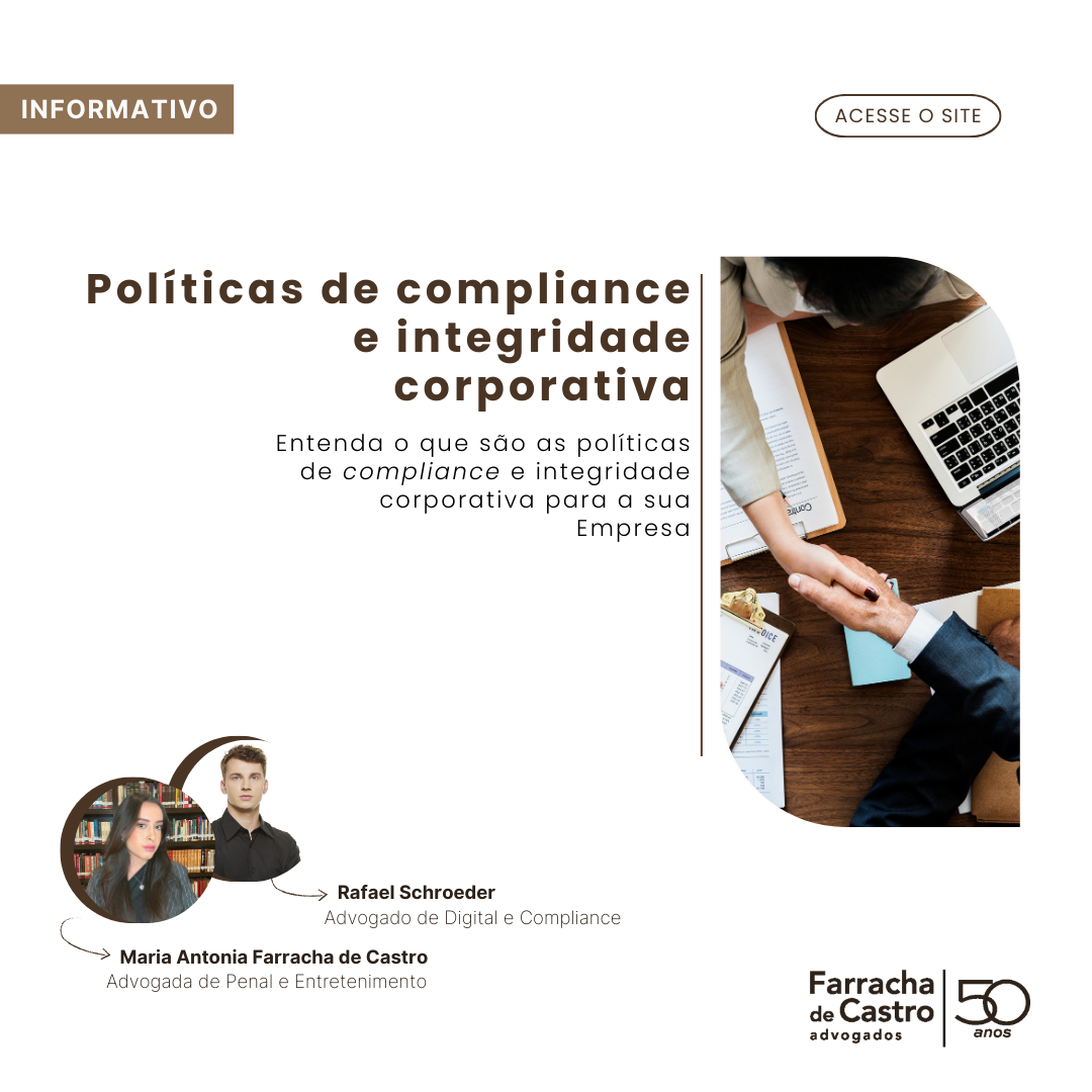 Ética e transparência são também valores que a Farracha de Castro cultiva desde sua fundação. Eles se materializam na comunicação ágil e clara em relação a questões relevantes. A integridade pauta não apenas as relações da equipe com os clientes, mas também sua conduta no mundo. Desde março de 2019, o escritório é signatário do Pacto Global da ONU, seguindo seus princípios de respeito aos direitos humanos e ao trabalho, adotando práticas sustentáveis e um programa de integridade para combate à corrupção.