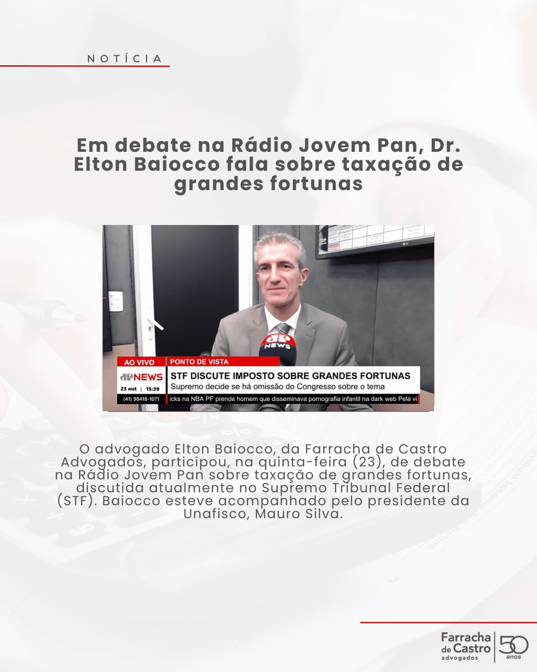 A nostálgica “Carta ao Tom – 74”, consagrada na voz de Vinícius de Moraes e Toquinho, também marca o ano em que nosso escritório estava em gestação, sendo planejado pelo saudoso fundador Carlos Alberto Forbeck de Castro.